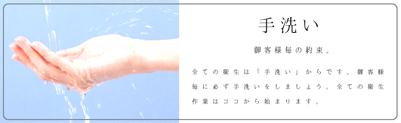 御客様毎に手を洗う事は、店内感染を防ぐ大切な第一歩です。髪の毛を扱う理美容師にとって、何気なく手指などに着いている刈り毛は気にもならないモノかもしれません。でも、御客様は違います。御客様毎に手を洗う、しいて言うならば頭(髪)を洗うという行為ですら立派な「公衆衛生」を守る第一歩だと思うのです。キチンと習慣づけてください。