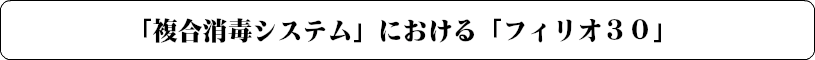 訪問先での複合洗浄消毒システムにおける洗浄過程において、フィリオ30は、殺菌効果を担うものであるのに対して、フィリオ30ナノは洗浄効果を担うものであり、殺菌洗浄工程としては双方を洗浄工程に組み込む必要がある。