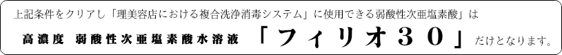 様々な弱酸性の次亜塩素酸製品が販売されておりますが、理美容室で消毒剤として現場使用する際の最低条件です。